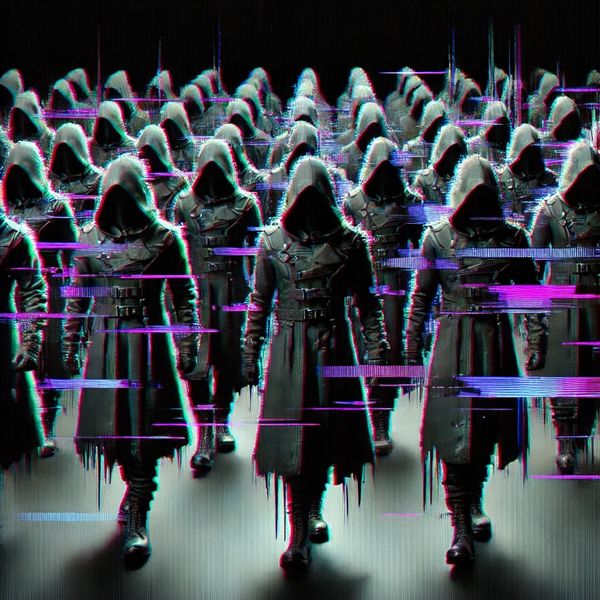 👁 The Symbol – A glitching, hooded figure. A mask. A shadow. A silent force moving in the dark.